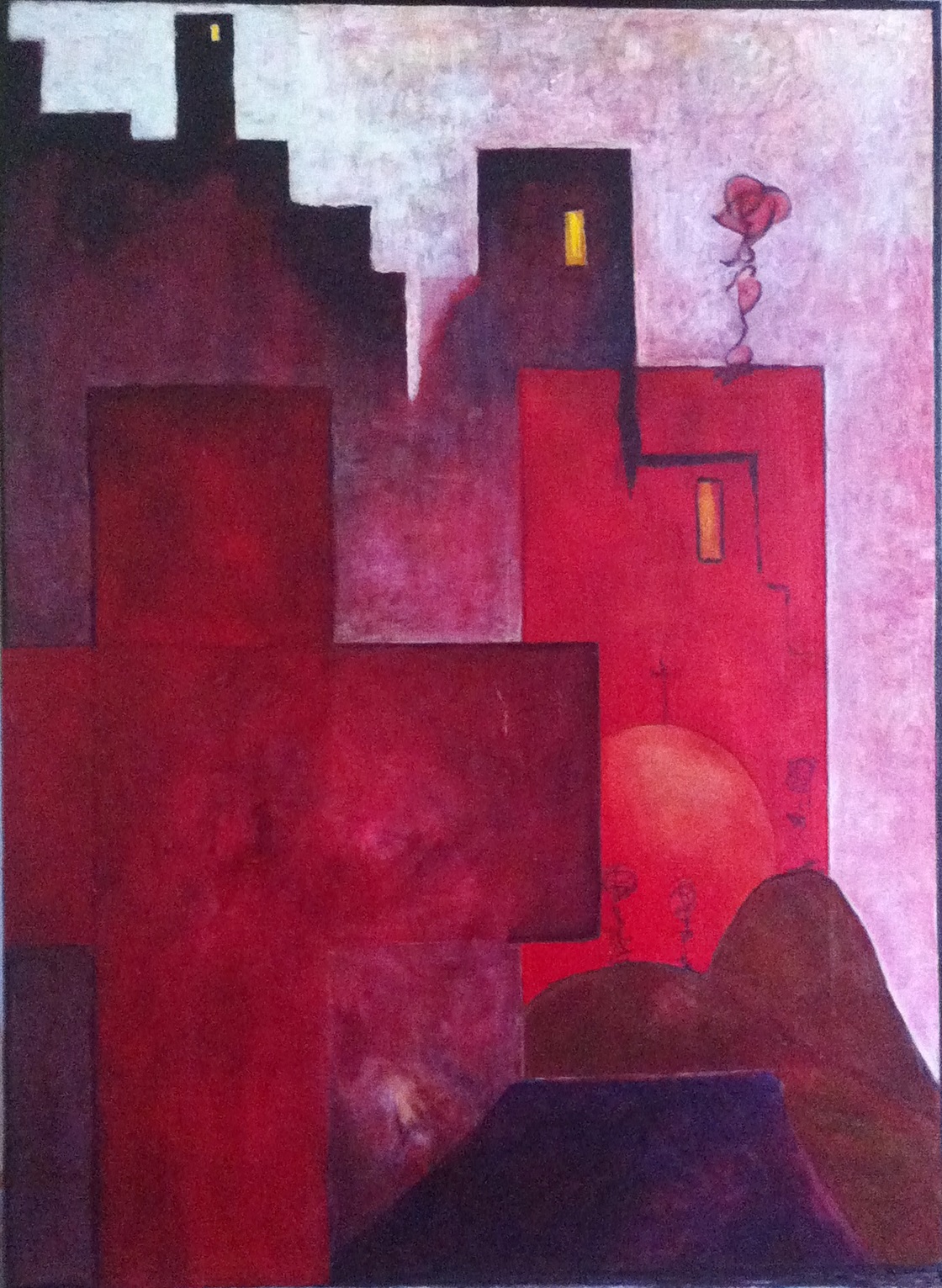 Oil, enamel and charcoal on stretched canvas, 915x610mm